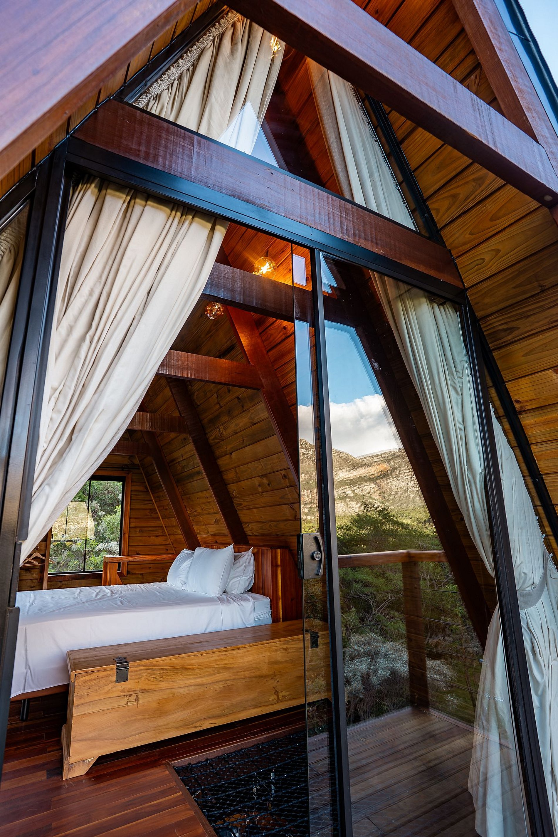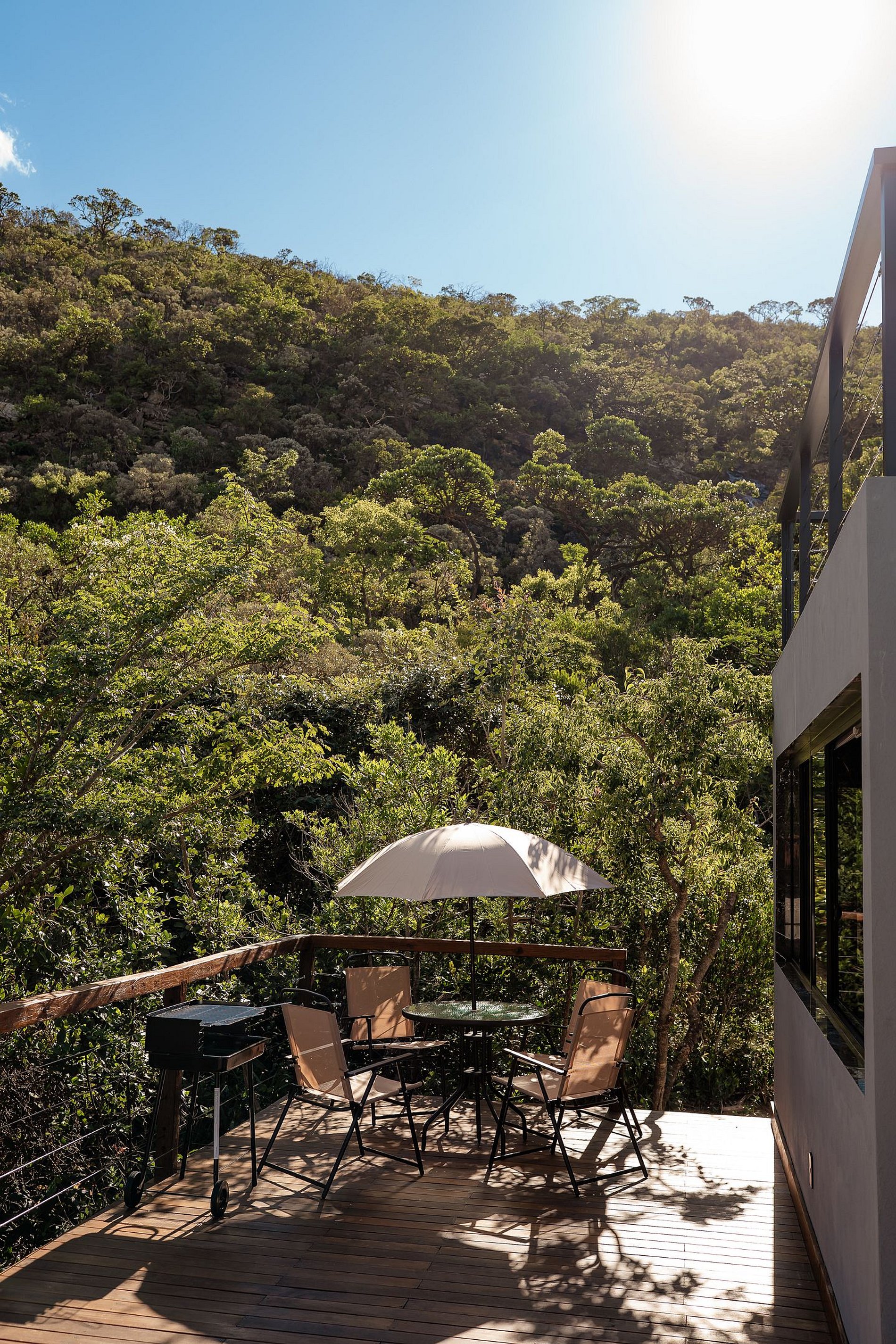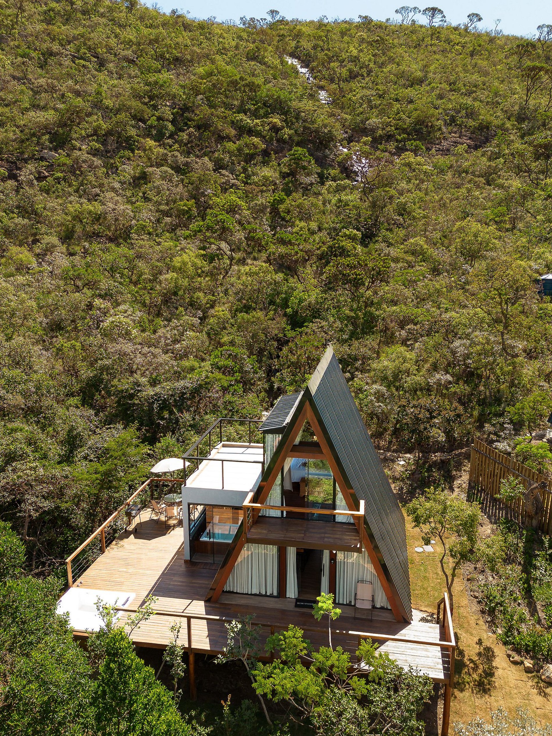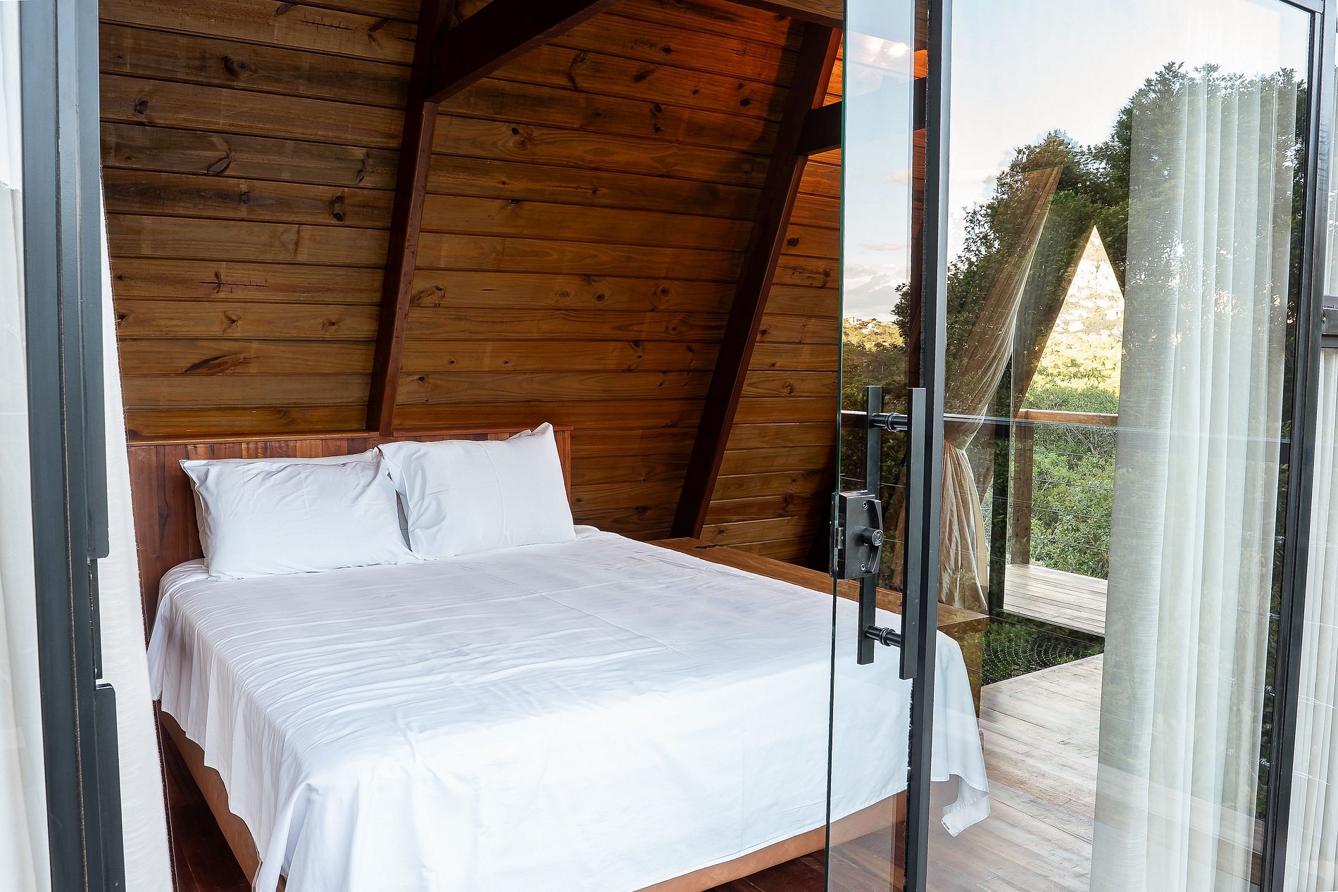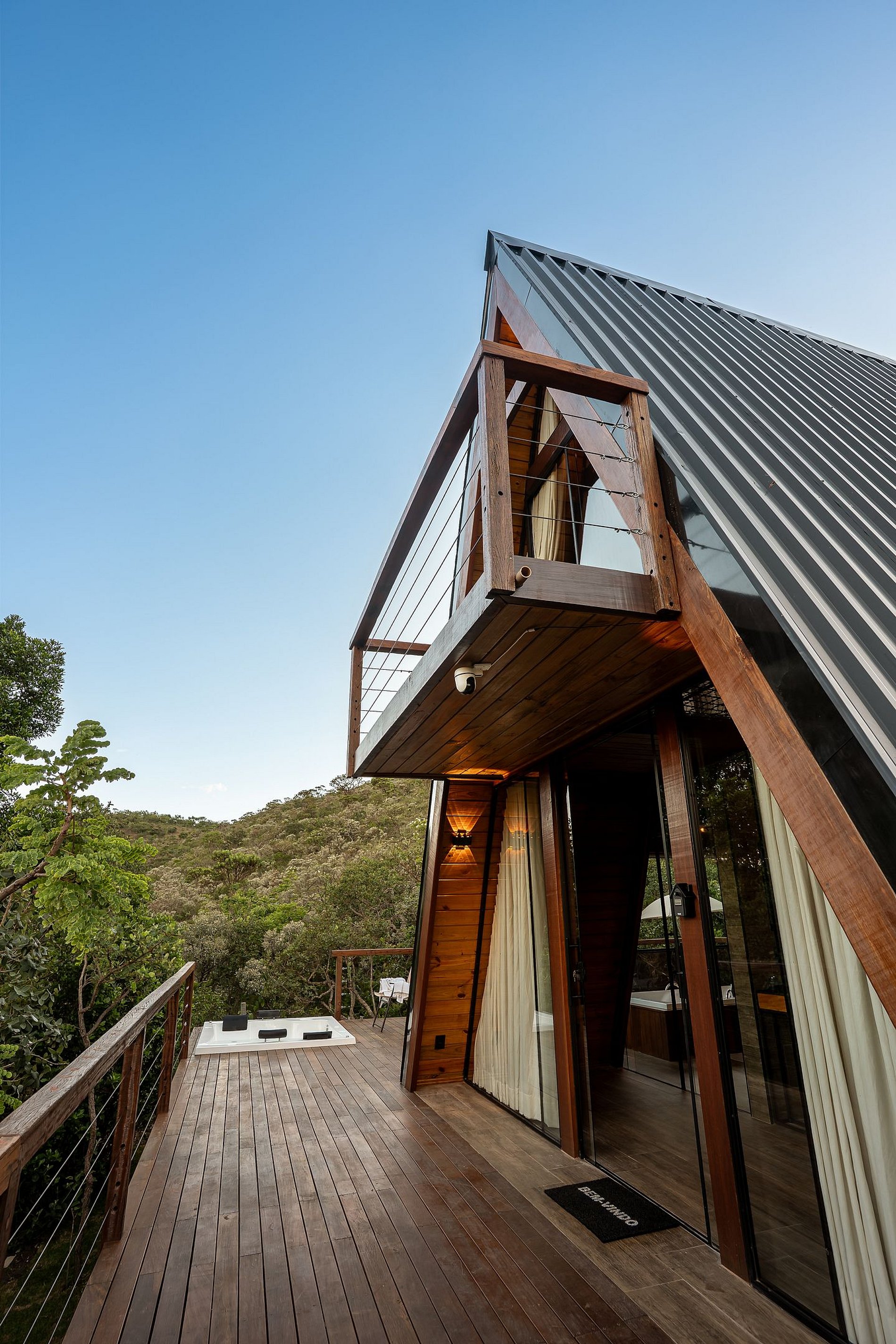 A cabana é suspensa do chão, possui um deck amplo, sala integrada à cozinha que é totalmente equipada, banheiro espaçoso com banheira, duas duchas e vaso sanitário em ambiente separado, proporcionando ainda mais privacidade. No mezanino está o quarto amplo e arejado com cama aconchegante, rede suspensa e uma grande varanda, oferecendo vista de 360° para a deslumbrante Lapinha da Serra. O espaço é totalmente gramado e o grande diferencial da acomodação além da privacidade de estar bem recuado, é a proximidade com a serra, onde, por alguns meses do ano, surge uma pequena cachoeira, permitindo que você se sinta verdadeiramente imerso na natureza.