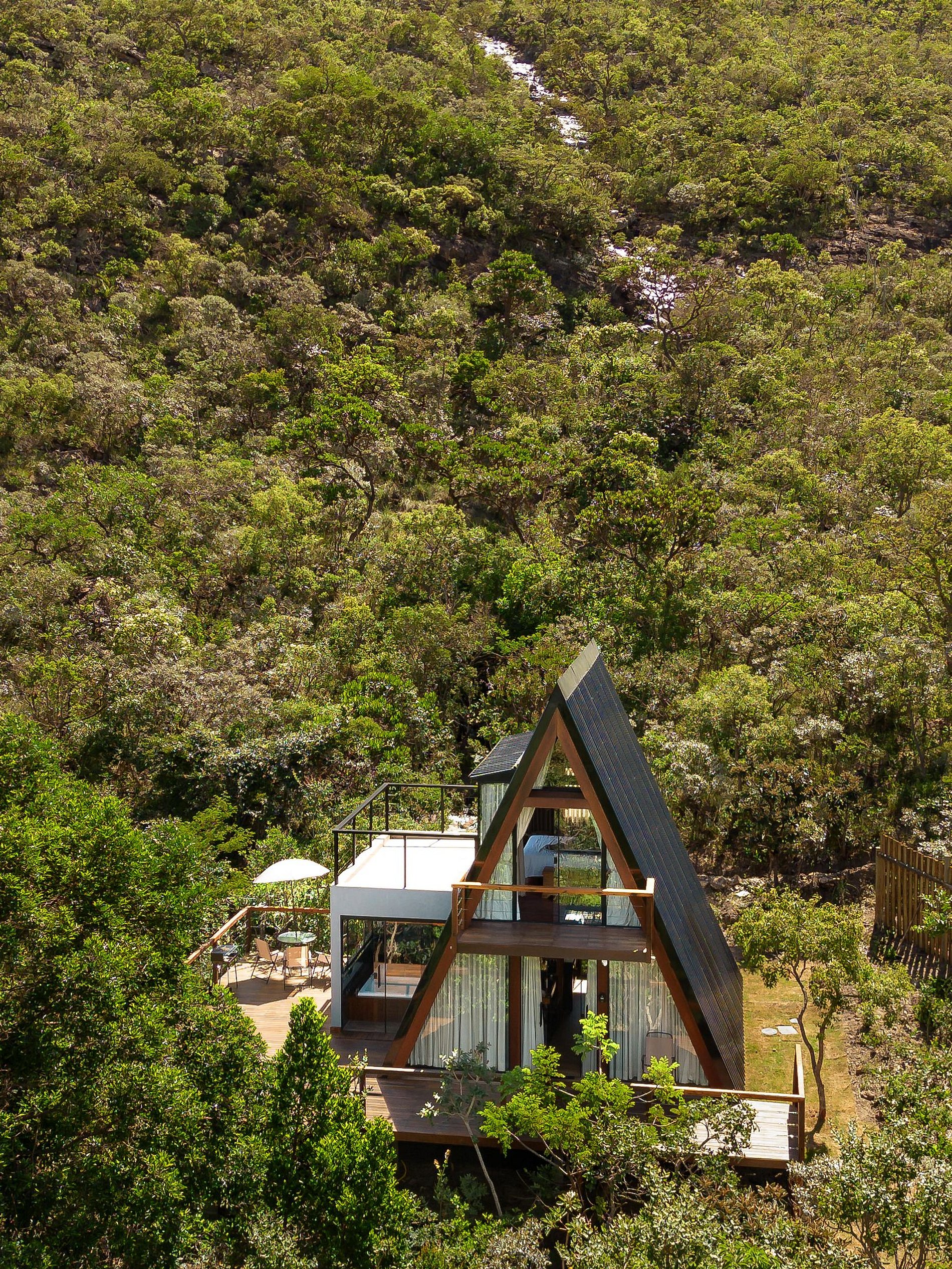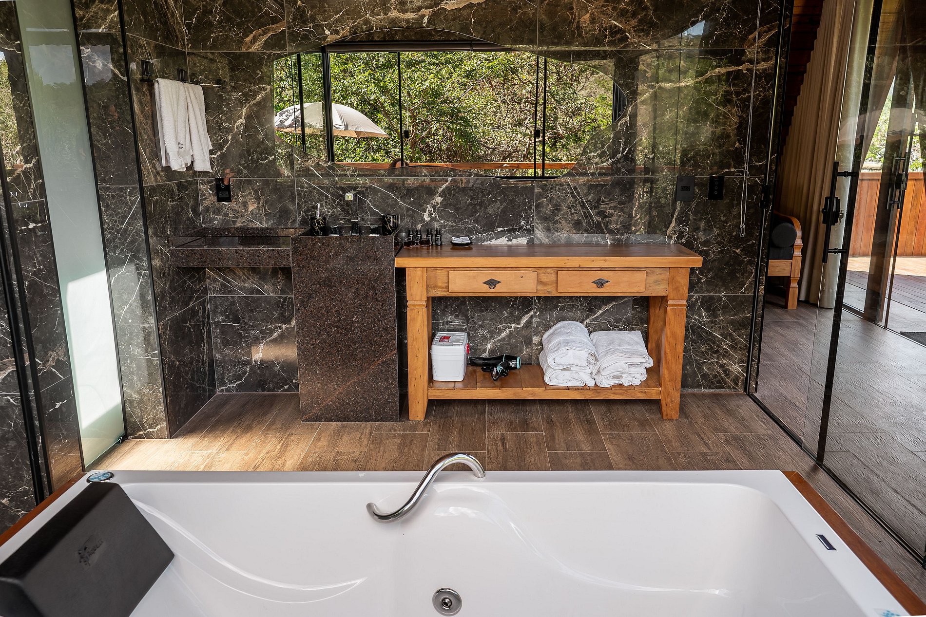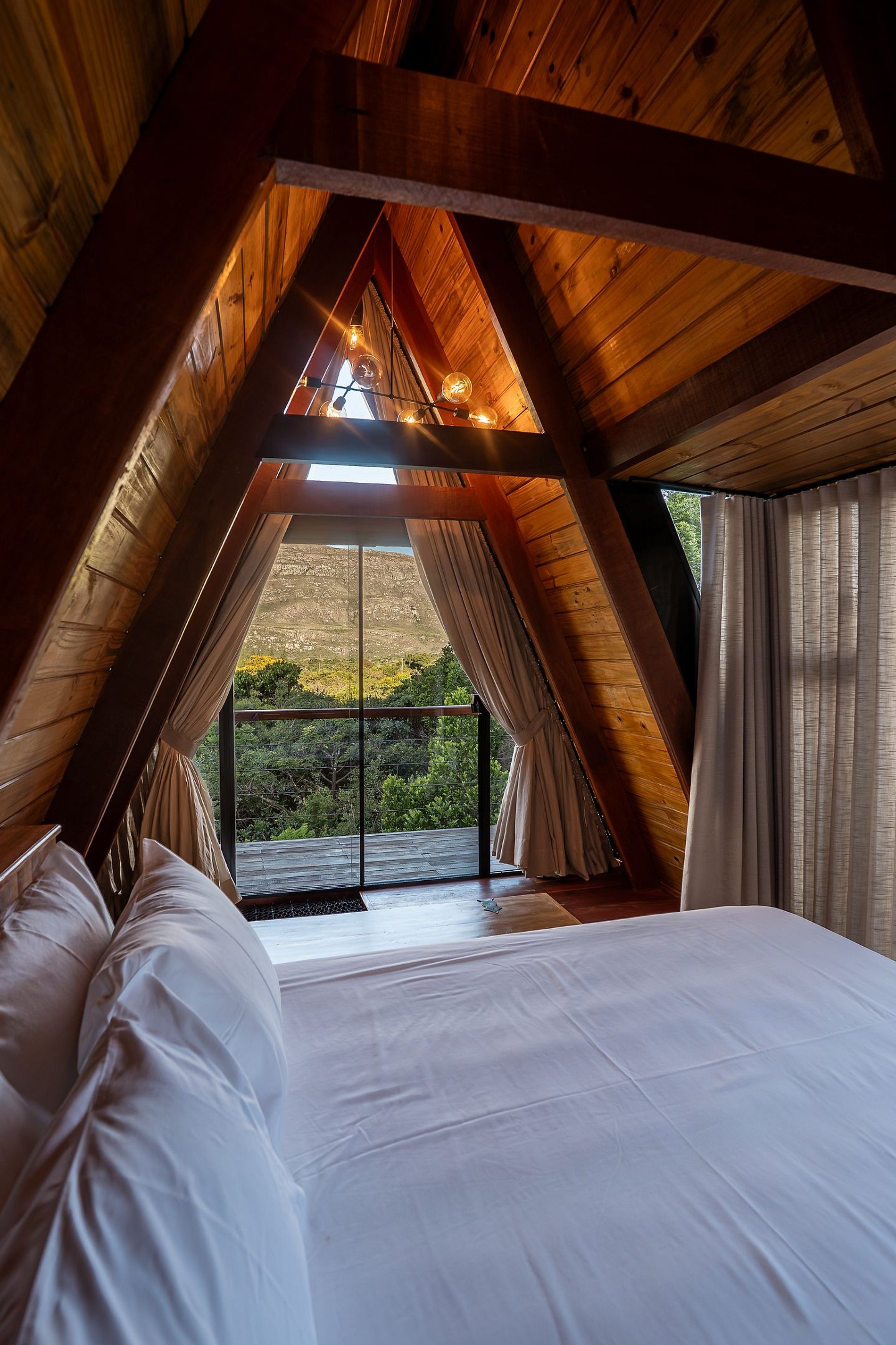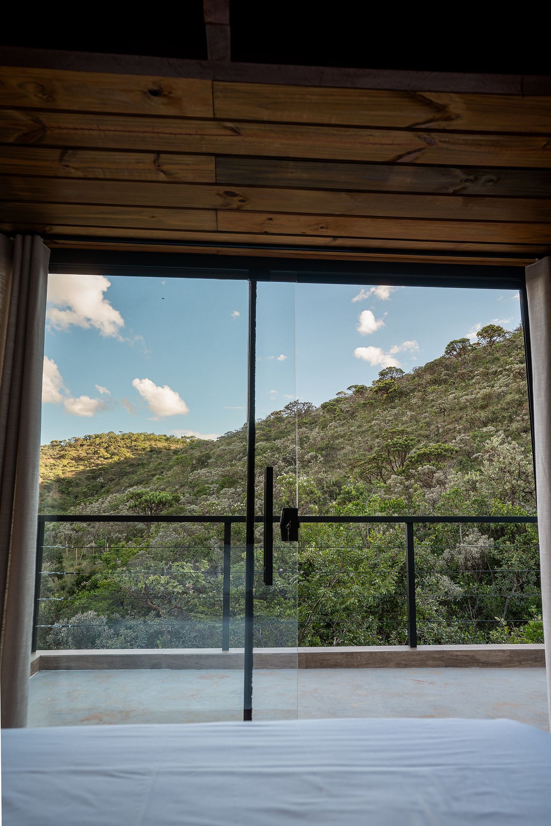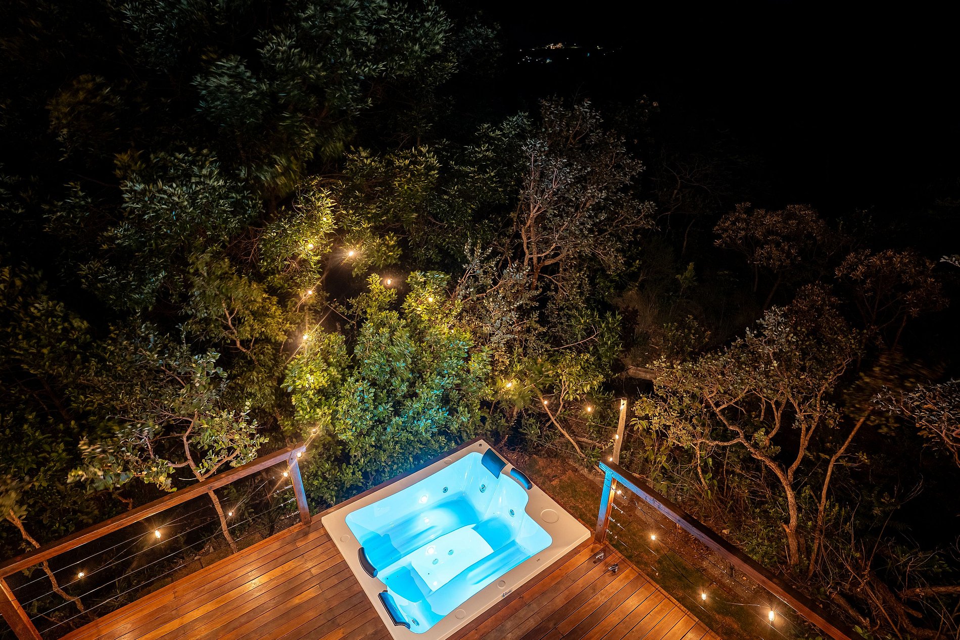 A cabana é suspensa do chão, possui um deck amplo, sala integrada à cozinha que é totalmente equipada, banheiro espaçoso com banheira, duas duchas e vaso sanitário em ambiente separado, proporcionando ainda mais privacidade. No mezanino está o quarto amplo e arejado com cama aconchegante, rede suspensa e uma grande varanda, oferecendo vista de 360° para a deslumbrante Lapinha da Serra. O espaço é totalmente gramado e o grande diferencial da acomodação além da privacidade de estar bem recuado, é a proximidade com a serra, onde, por alguns meses do ano, surge uma pequena cachoeira, permitindo que você se sinta verdadeiramente imerso na natureza.